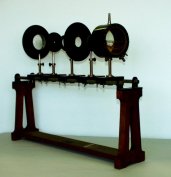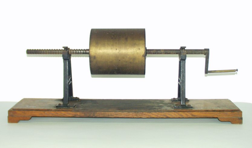 クロノグラフ(Chronograph) 図書: 回転する円筒状に、等間隔に時刻を記録するペンと、測定のための時刻を記録するペンを持ち、刻印された記録から時間を測定する装置。短い時間を精度良く測定するために用いられた。 |