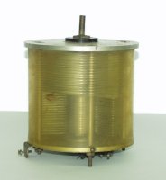摺動抵抗器(Slide rheostat) 図書: 螺旋状に巻かれた抵抗線上の接触子を移動して、抵抗値を調節する抵抗器。 |