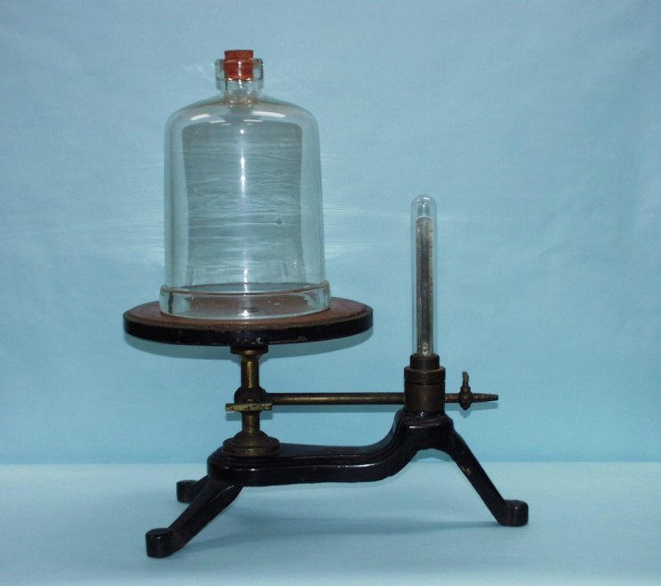 放電管(Vacuum discharge tube)) 図書: 真空ポンプに直結して、放電状態により真空度を測る目安にする。真空度0.02mmHg以下では陽極光があり、この状態で用いるものをガイスラ−管という。 |