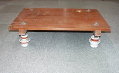 振動板(Membrane) 平面振動板の振動状態を観察する板。板の上にふきぬか等をまんべんなく撒き,板を弓で擦って振動させる。板の上のふきぬかは板の振動が弱い部分に集まり,板の振動の様子を観察することができる。 |