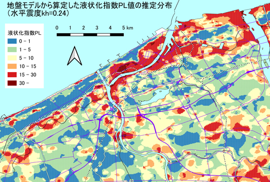 橋梁などの土木構造物や建築物の設計基準は、大きな地震災害を契機に改訂を重ね、 その被害は減少してきましたが、対策が容易でない液状化や斜面崩壊など、地盤に関わる被害がクローズアップされています。2024年元日の能登半島地霙では、新潟市内の被害の大半が液状化に起因するものでした。私たちの暮らす土地の自然災害に対する危険度は、国や自治体の配布するハザードマップで確認するよう呼びかけられますが、地盤災害に関するハザードマップは、作成方法が未確立で改善の余地が多く残されています。その背景から研究室では、近年データース化され利用可能となってきたボーリング調査のデータを活用し、液状化危険度や地盤の揺れやすさなどの地震ハザードを広域推定する手法について研究を進めています。