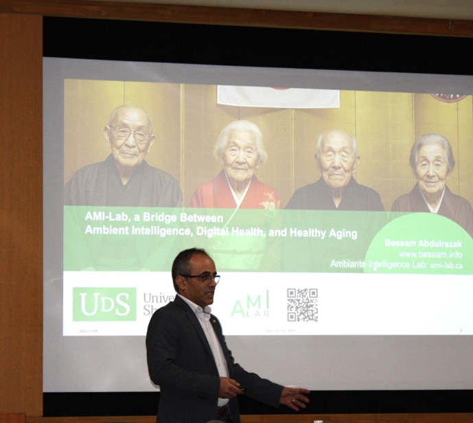 IoTとAIを活用したスマート環境が、医療・介護・健康長寿にどのような変革をもたらすかを紹介。AMI-Labにおける多分野連携の研究事例を通して、デジタル技術が人の健康を支える未来像を描かれました。