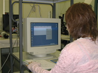 最後は、運動機能障がい者がコンピュータを操作するためにつかうスイッチの設計・製作実習を行い、体験的に「障がい者ニーズに即した支援機器づくり」を学びます。具体的には、少人数グループごとに独自のスイッチを考案・設計し、与えられた材料で製作してもらいます(図4)。次に試作したスイッチでコンピュータを操作し、その性能や操作性を評価します(図5)。最後は成果を報告書にまとめるだけでなく、プレゼンテーション用OHPを作成し、グループごとに成果を口頭発表します(図6)。発表後には質疑討論も行い、さらに日本ALS協会新潟県支部の方から講評してもらいます。毎年、ユニークなスイッチが考案されるため、質疑討論は白熱します。