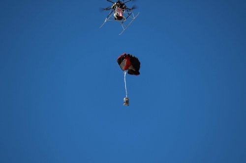 空き缶サイズの模擬人工衛星をドローンなどで上空50m程度まで打ち上げ、地上の目標地点までどれだけ近づけるかを競います。