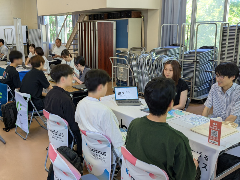 関係各位のご協力により、実数はカウントできていないものの、来場者アンケートの結果等から、約170人ほどの学生が会場を訪れたようです。昨年度開催時よりも来場人数が増えたことで、やや会場内が手狭に感じられるほどでしたが、学生と企業等の皆様との間で活発な交流の様子が窺われました。