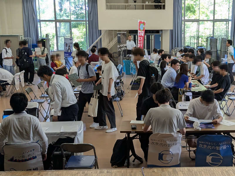2025年7月24日(木)・25日(金)の2日間、新潟県内の製造業、ICT企業等計41社・団体を招いて学内キャリアガイダンスを開催しました。本事業は毎年度開催してきましたが、今年度の開催をもって第10回を迎えることができました。初期には2月20日頃を開催日としてきましたが、冬場の悪天候を避けること、学生の学修ステップへの寄与向上を狙うこと、そして就職・採用活動の早期化に対応するため、昨年度から7月下旬に開催時期を移行したものです。