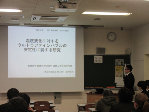 令和7年度博士前期課程学位論文公聴会が開催されました. 当研究室所属の4名の大学院生が2年間の成果を披露しました.