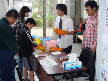 10月17日(土)13:50〜16:15に工学部にて開催された小・中学生対象の科学実験イベント「見てさわって 工学技術」において,本学科石橋・大木研究室による「コース6:電気でイラスト作成!?」が実施されました.当日の参加者160名中約60名の小中学生が本コースに参加し,銅めっきを利用したイラスト入りプレートの作製に取り組みました。