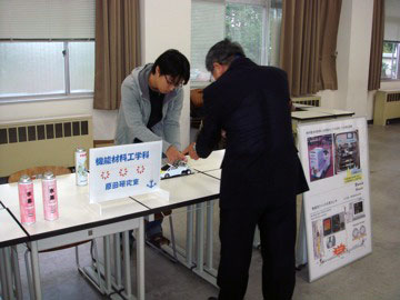10月12日(月)〜18日(日)で開催された「新潟大学Week」イベントの一環として,10/18(日)13:00〜15:00に工学部学生玄関1Fロビーにて本学科の研究紹介を行いました。武田・中野研究室,坪川研究室,八木研究室および石橋・大木研究室による研究紹介パネルの展示,大学院生による説明に加えて武田・中野研究室学生による模擬実験を実施しました。また同日開催の工学部祭における研究室公開には,本学科より原田研究室,田中研究室,山内研究室が出展しました。