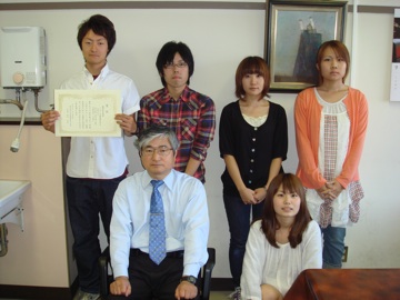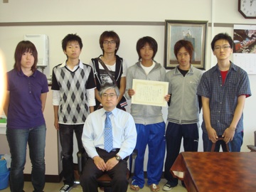 8月5日に開催された「工学リテラシー入門」学科成果発表会にて最優秀発表賞および優秀発表賞の評価を受けた3グループに対する表彰式が,10月1日に学科会議室にて行われました.このうち,最優秀発表賞を受賞した「波(音,電気信号,光信号)をモチーフとして」のグループは,10月3日に行われる工学部の全体発表会にて学科代表として発表する事が決まっています。
