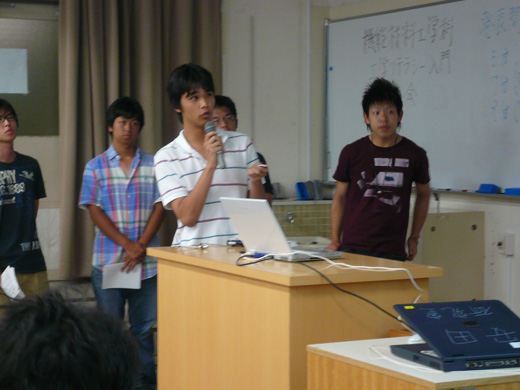 1年次の科目として実施されている「工学リテラシー入門」の,今年度の取り組みをまとめた発表会が7月20日(水)工学部103講義室にて開催されました.各グループの発表に対する評価が当日参加した教員および大学院生からなされた結果,以下の2グループを最優秀発表賞および優秀発表賞と決定しました。