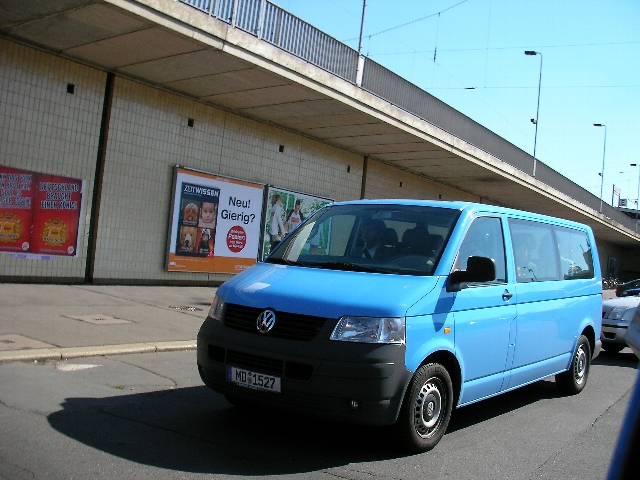 大学のバンで荷物と一緒に宿舎に届けてもらいます。ディーゼル先進国のドイツでは、この種の貨物車の動力性能がとても良い(速い)です。貨物車なのにターボ・ディーゼル・インタークーラーのバッジがリヤに光っています。