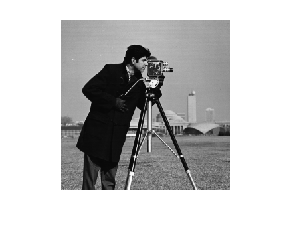 cameraman.tif はグレースケール画像なので、 変数 I は二次元配列として画像データを保持する。