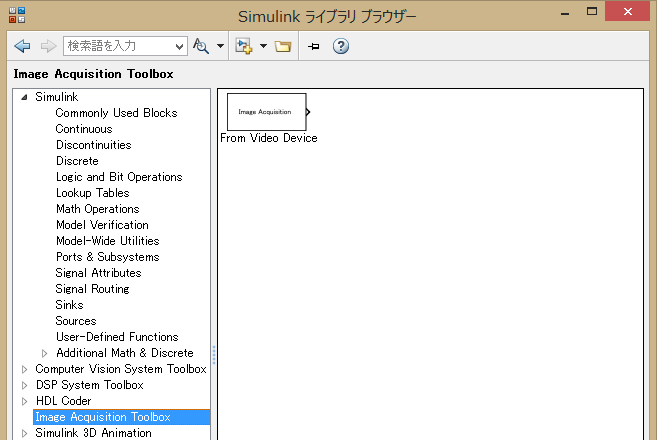 を選択して、「From Video Device」ブロックを利用すれば、 接続されたカメラからの映像を入力として利用できる。