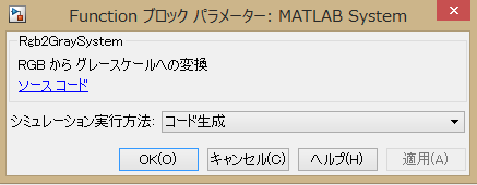 入出力ポート名などを指定してみよう。 ブロックパラメータダイアログから Rgb2GraySystem のソースコードを開こう。
