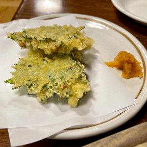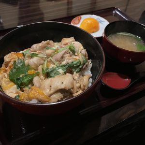 (納豆大葉揚げと奥久慈しゃもの親子丼)