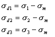 塑性流動(すなわち降伏)が一般に、一定の静水圧応力の適用ではなく試験片のひずみの結果生じるので、応力の偏差成分は特別に興味がある。応力偏差は軸選択に依存している。静水圧成分は依存してない。従って、主偏差応力は次のとおりである