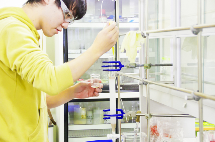 近年深刻な社会問題となっているエネルギー・環境問題では、化石燃料をエネルギー源としている社会システムにその根底がある。この問題を本質的に解決するためには、化石燃料に替わるクリーンな次世代エネルギー供給システムの開発が必要である。クリーンな光エネルギー変換デバイスとして植物の光合成に着目した。植物の光合成では、光機能(集光、光電荷分離)、電子機能(ベクトル電子伝達)、多電子触媒機能(水の酸化、二酸化炭素の還元)など様々な機能の集積により、光化学エネルギー変換が達成されている。当研究室では、エネルギー・環境問題を本質的に解決するために、光合成の精緻を極めた光化学エネルギー変換の分子基盤を手本に、高性能な光機能材料、電子機能材料および多電子触媒材料を合成し、それらを集積・融合することにより革新的な人工光合成系の構築に挑戦する。
