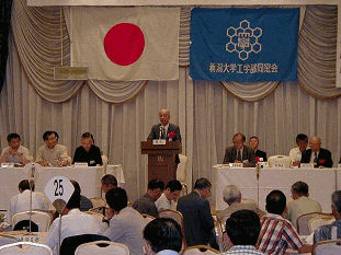 | 理事会・総会では例年通り平成14年度会務報告・決算報告と平成15年度事業報告・予算が提案通り承認されたことに始まり、平成16年度全国総会が7月10,11日に品川プリンスホテルにて行われる旨、原東京支部長からのご挨拶がありました。また続いて行われた同窓会会則(第一章総則第四条5項)改定と役員改選の件についても本部提案の通り可決されました。今回はそれらに加えて情報工学科石井先生より「同窓会活動の電子化」についての説明があり、来年4月からの運用ができるよう各支部からの協力が要請されました。 最後に仙石学部長より、最近の母校の状況についてお話をいただきましたが、法人化を目前に控えて激動の時を迎えようとしている母校が多くのことに取り組んでいる様子が良くわかりました。同窓会についてもその位置づけが今後より大きく重いものになっていくということで、母校のみならず悠久会も時代の流れに沿って変わっていかざるを得ないとの印象を残して理事会・総会は閉会致しました。 |